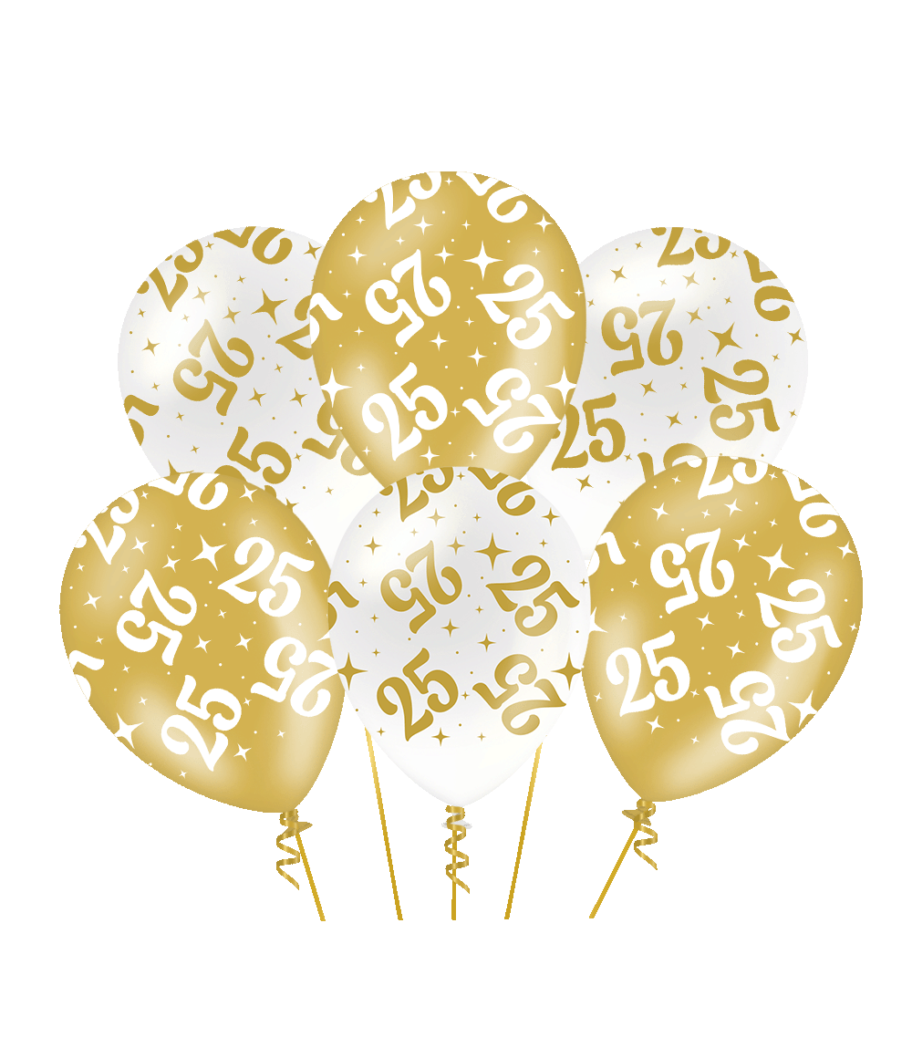 25 Jahre Ballons Weißgold 30cm 6Stk