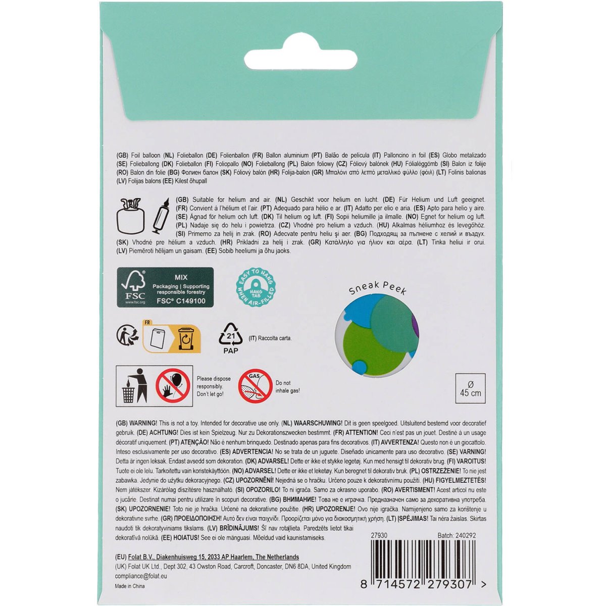 Regenbogen-Punkte für 30 Jahre! Folienballon - 30 - Regenbogen - 45 cm. Inhalt: 1 Folienballon. Kann zum Beispiel bei folgenden Partys/Partyanlässen verwendet werden: Geburtstag. Ein Ballon, der jeden 30-Jährigen glücklich machen wird. Mit bunten Punkten, die an einen Regenbogen erinnern. Geeignet für Helium und Luft. Dieser Artikel ist aus Folie hergestellt.