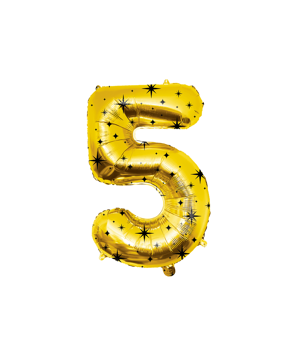 5 Jahre Figur Ballon Gold Schwarz Sterne 86cm