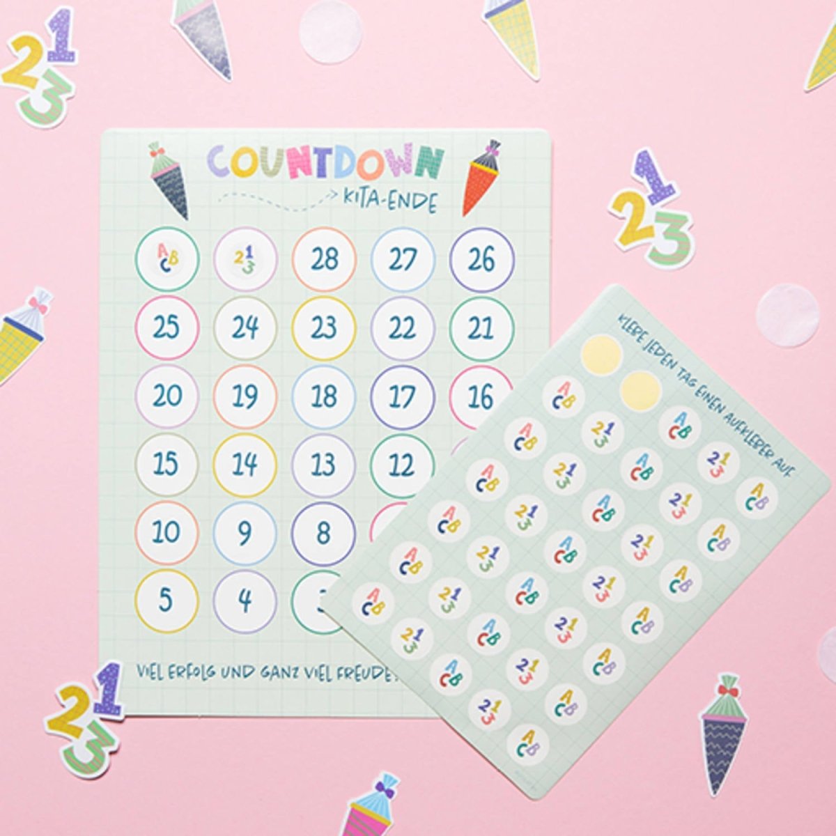 Mit den beiliegenden Aufklebern lässt sich jeder Tag leicht abhaken. Eine praktische und festliche Ergänzung zur Vorbereitung auf den ersten Schultag.
