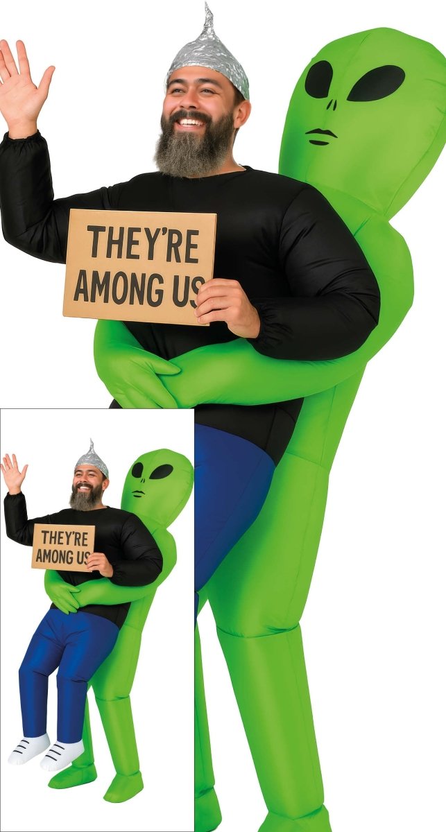 Mit diesem witzigen Carry Me-Kostüm , in dem es aussieht, als würde dich ein Außerirdischer herumtragen, fällst du auf jeder Party auf! Dank des eingebauten Ventilators bläst sich das Kostüm leicht auf und bleibt den ganzen Abend in Form. Perfekt für Mottopartys, Karneval oder Feste.