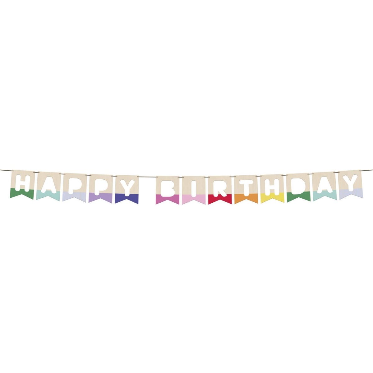 Holz an jedem Geburtstag! Fahnenleine - Holz - "HAPPY BIRTHDAY" - Stripetastic - 4 m. Inhalt: 1 Fahnenleine. Kann zum Beispiel bei folgenden Partys/Partyanlässen verwendet werden: Geburtstag, Kinderfest. Die bunte Fahnenleine, aber aus Holz. Die Buchstaben "HAPPY BIRTHDAY" sind ausgeschnitten und der untere Teil der Fahnen hat jedes Mal eine andere Farbe. Die Fahnen sind 11 x 14 x 0,3 groß und können über das beigefarbene Band geschoben werden. Da diese Fahnenleine aus Holz ist, kann sie an mehreren Geburtstagen verwendet werden. Diese Fahnenleine gehört zu der Stripetastic Kollektion von