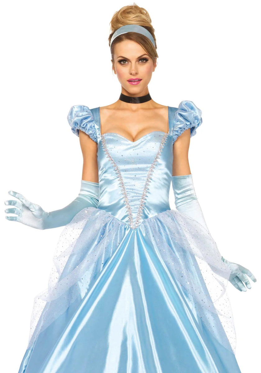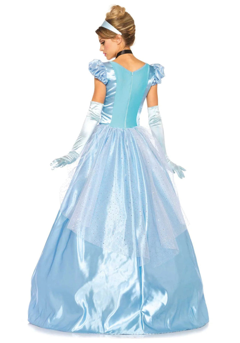 Erlebe dein eigenes Märchen in diesem 3-teiligen klassischen Cinderella-Kostüm von Leg Avenue! Dieses Set besteht aus einem langen Satinkleid mit Glitzertüll-Akzenten, einem Satin-Halsband und einem passenden Haarband. Das Kostüm ist perfekt für Halloween, Märchenpartys oder wenn du einen zauberhaften Prinzessinnen-Look kreieren willst! 🌟🎃