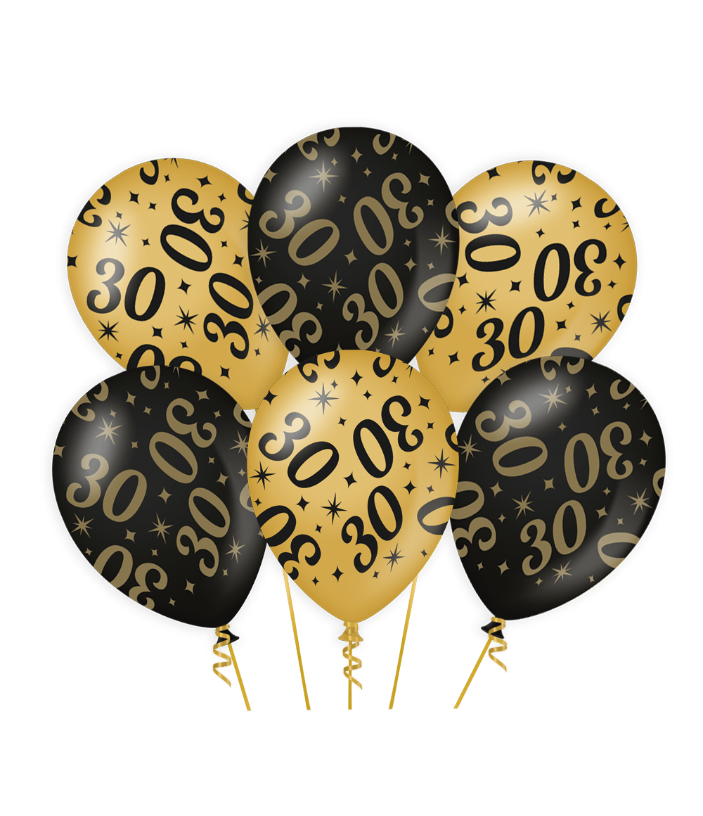 Ballons 30 Jahre Gold Schwarz 30cm 6 Stk