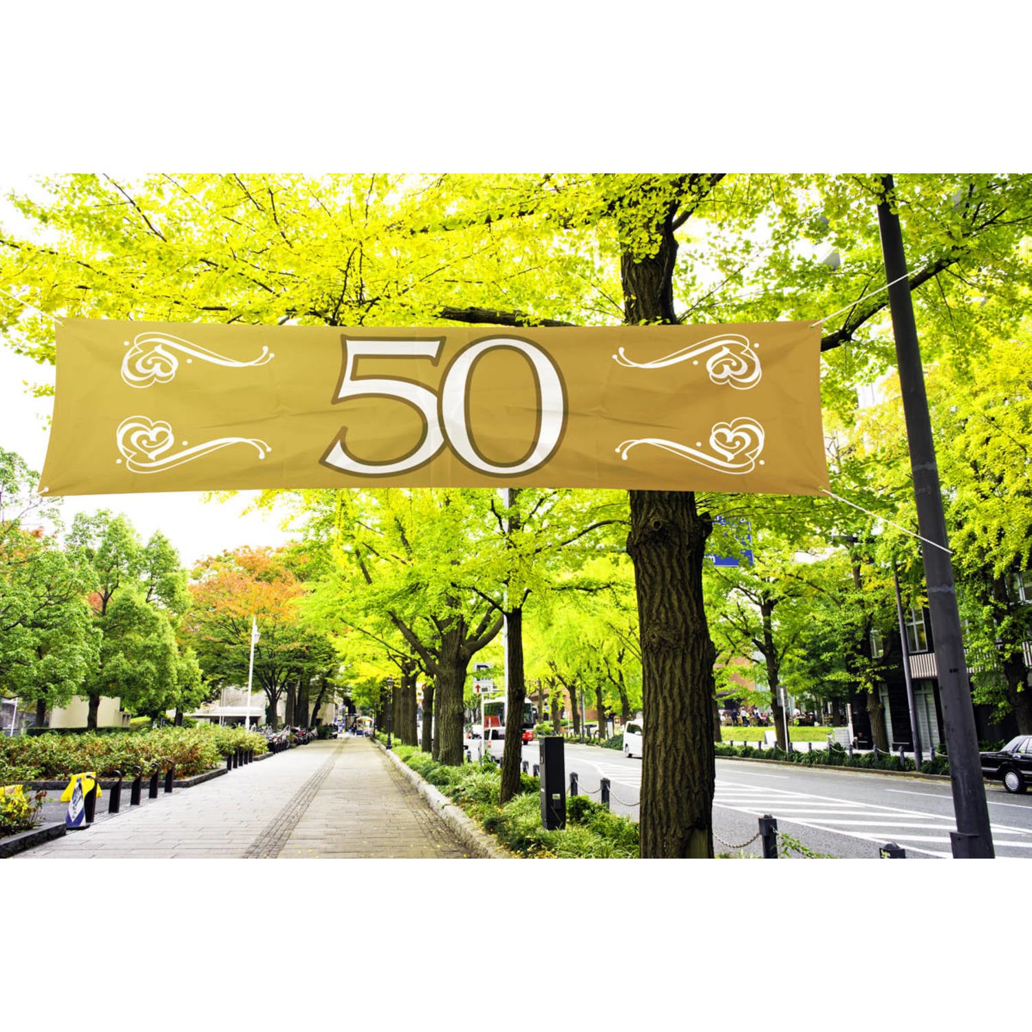 50 Jahre Goldenes Jubiläumsbanner - 180x40cm. Inhalt: 1 Banner. Farbe: Goldfarbe. Zum Beispiel für die folgenden Anlässe: Geburtstag, Jahrestag. Maße dieses Artikels: 180x40cm. Dieser Artikel ist aus Polyester hergestellt.