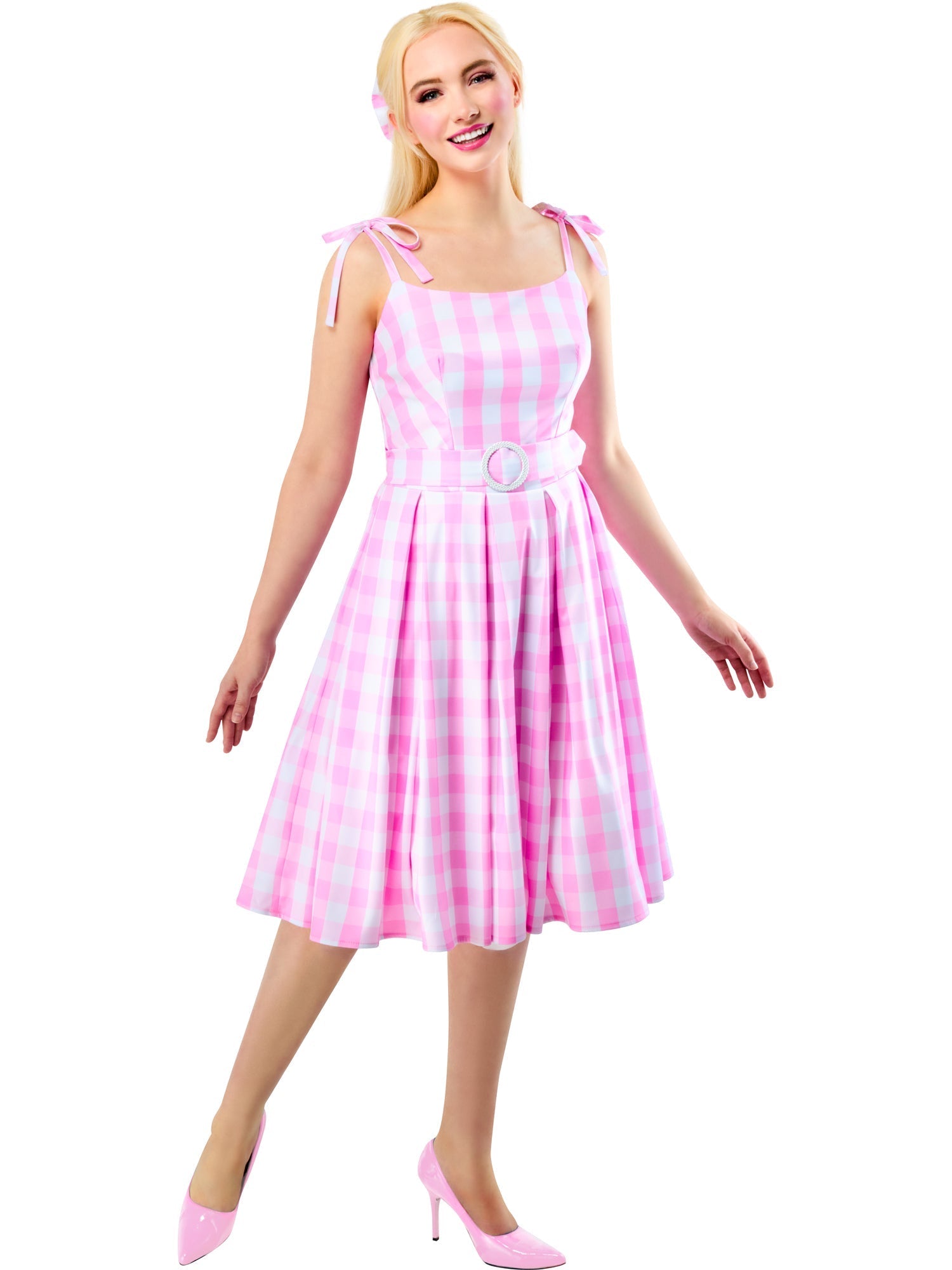 Tauche ein in die zauberhafte Welt von Barbie The Movie mit unserem atemberaubenden Perfect Day Barbie Kostüm! Dieses zauberhafte Outfit besteht aus einem eleganten Kleid, das den anmutigen Stil von Perfect Day Barbie widerspiegelt, mit einem bezaubernden Gürtel und einer wunderschönen Haarschleife, um den Look zu vervollständigen. Umarme den Glamour und die Raffinesse von Perfect Day Barbie, während du deine eigenen fabelhaften Abenteuer erlebst!