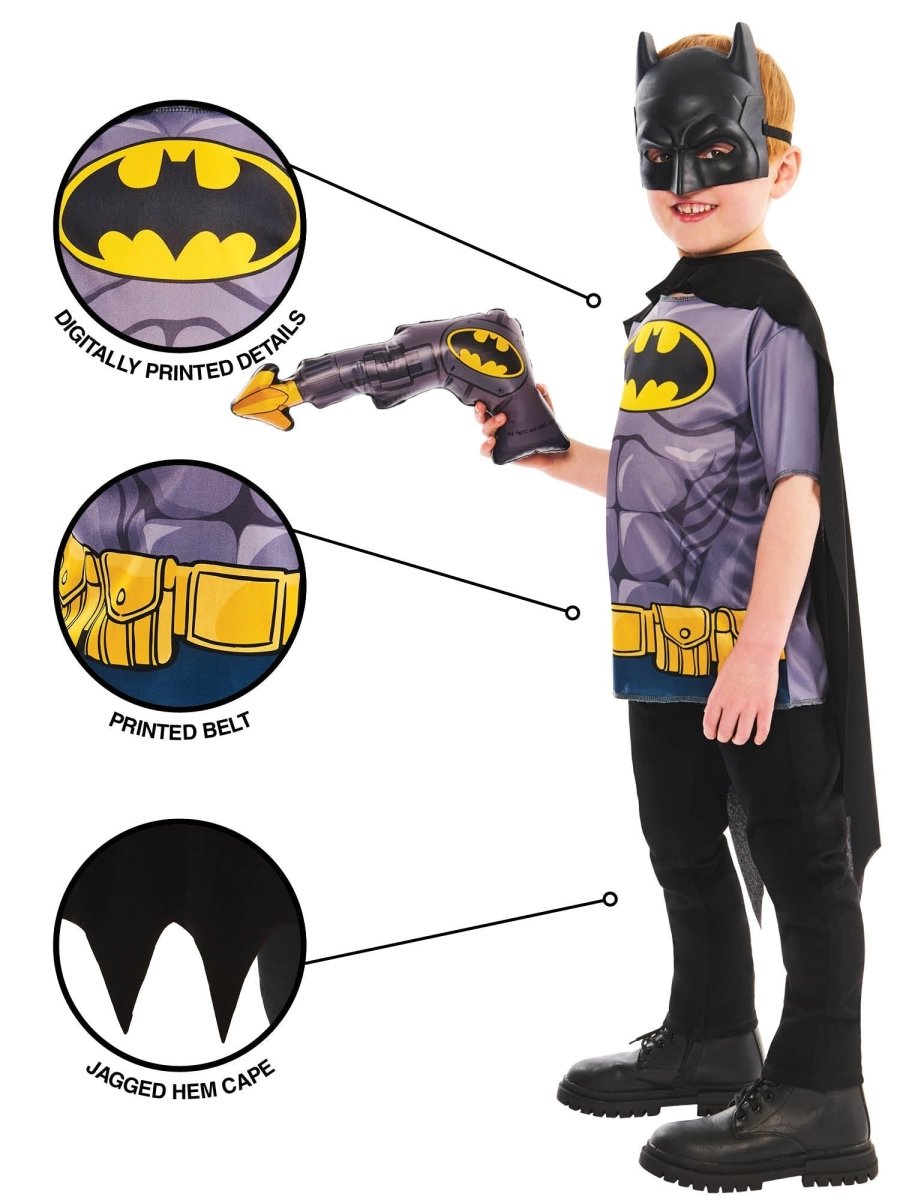 Mit diesem Batman-Kostümset ist dein junger Superheld bestens gerüstet, um Gotham City zu beschützen.