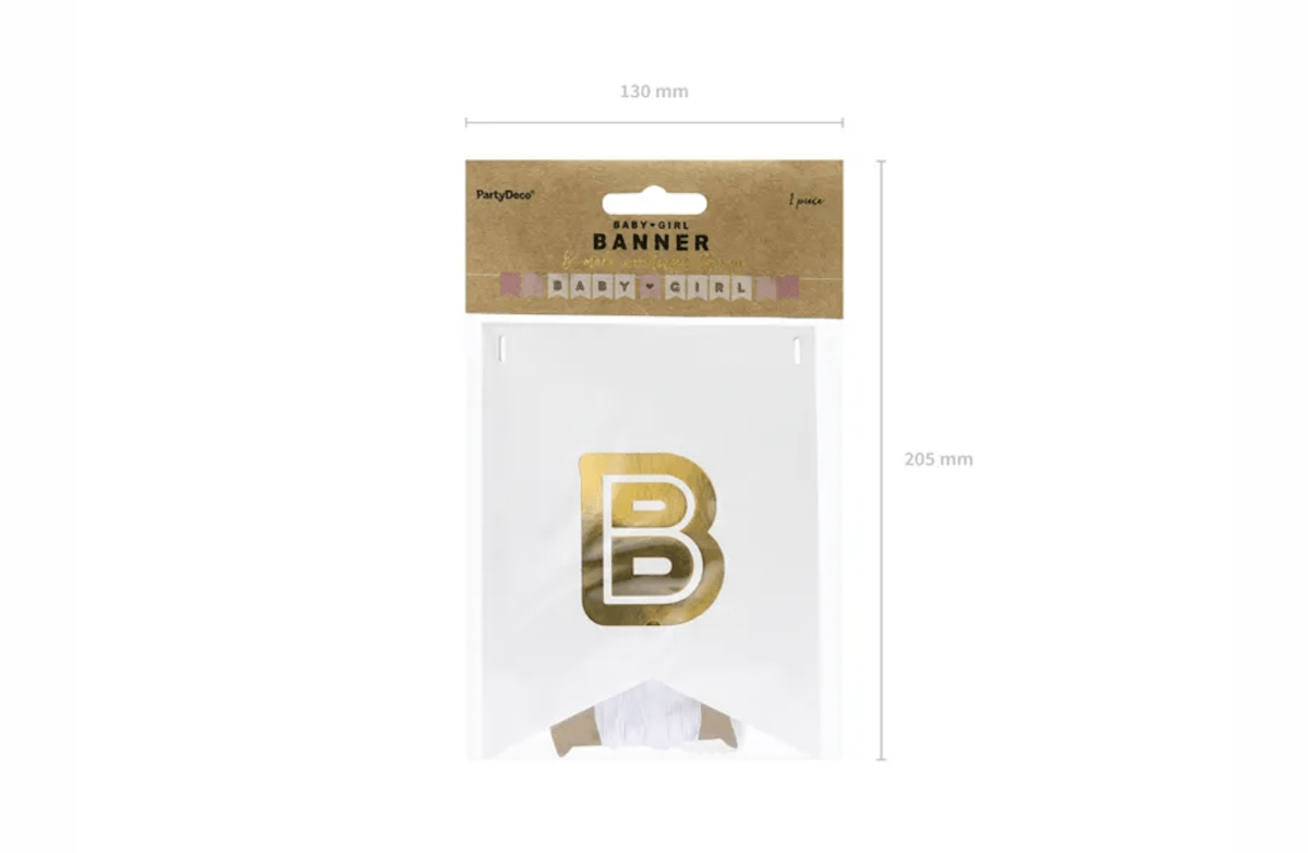 Beschreibung Bewertungen Über dieses Produkt Banner Baby Girl, Farbmix mit goldenem Schriftzug, zum Selbermachen, Set enthält Buchstaben und ca. 2,5 m weißes Band, Maße nach der Montage: Höhe ca. 15 cm, Länge ca. 175 cm. Trustpilot