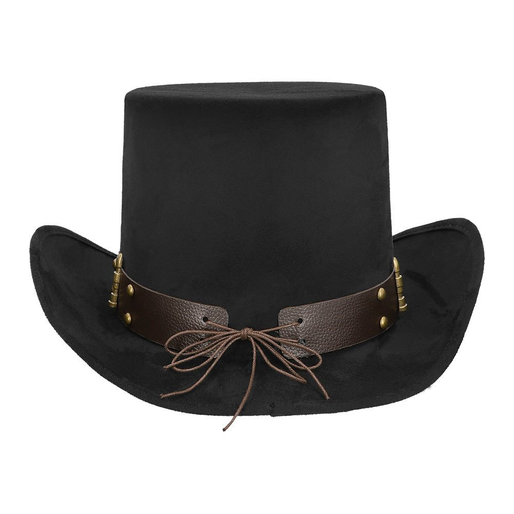 Vervollständige deinen industriellen Steampunk-Look mit dem beeindruckenden Bulletpunk-Hut. Dieser stilvolle Zylinder hat einen luxuriösen Wildleder-Look und ist mit einem robusten Lederband voller Metalldetails - darunter ein Adler und kugelförmige Nieten - für den typischen retro-futuristischen Steampunk-Look ausgestattet. Dank des elastischen Innenbands hat der Hut eine bequeme Passform und bleibt bei jeder Party an Ort und Stelle.