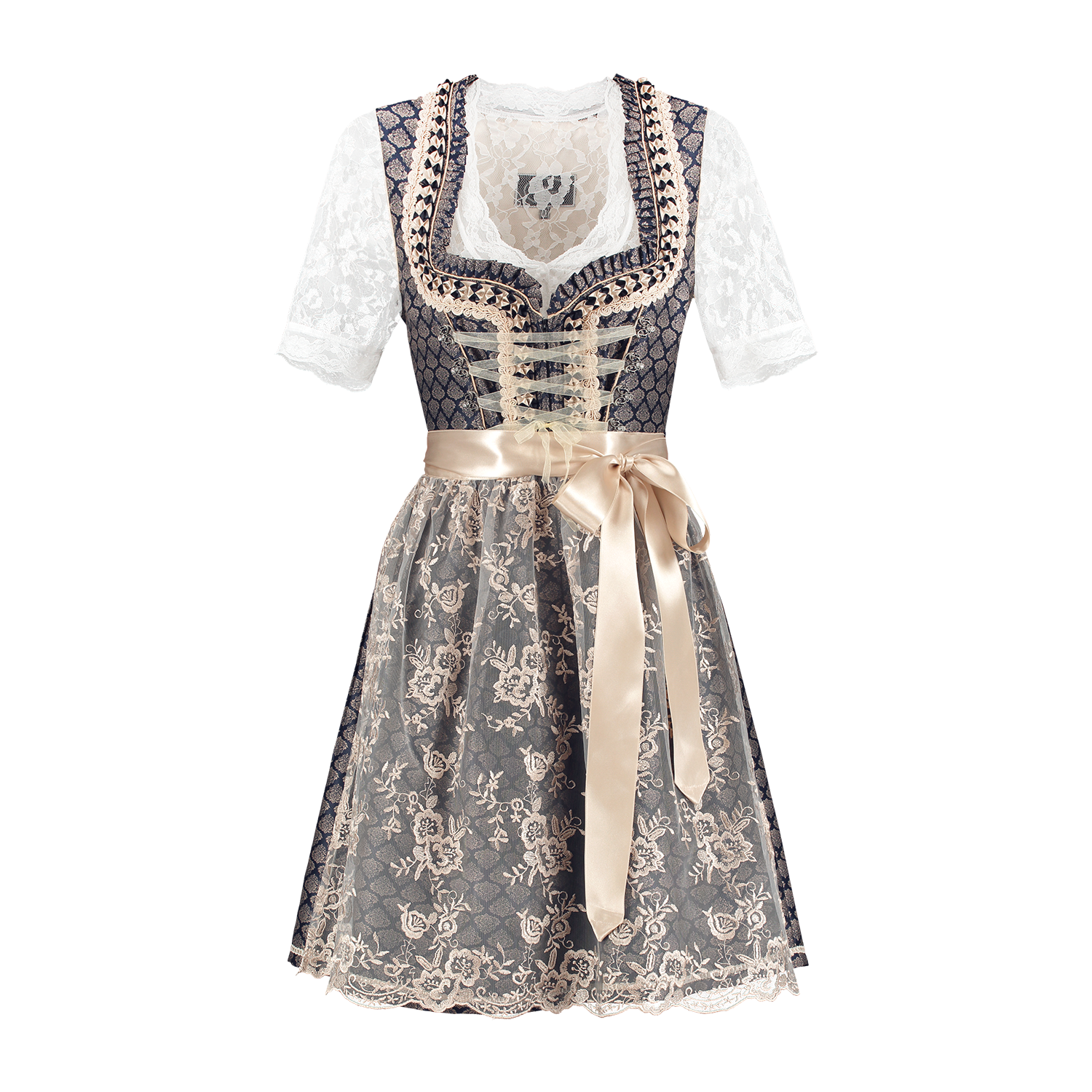 Blau Weiß Creme Dirndl Kleid Oktoberfest Frauen 2 Stück