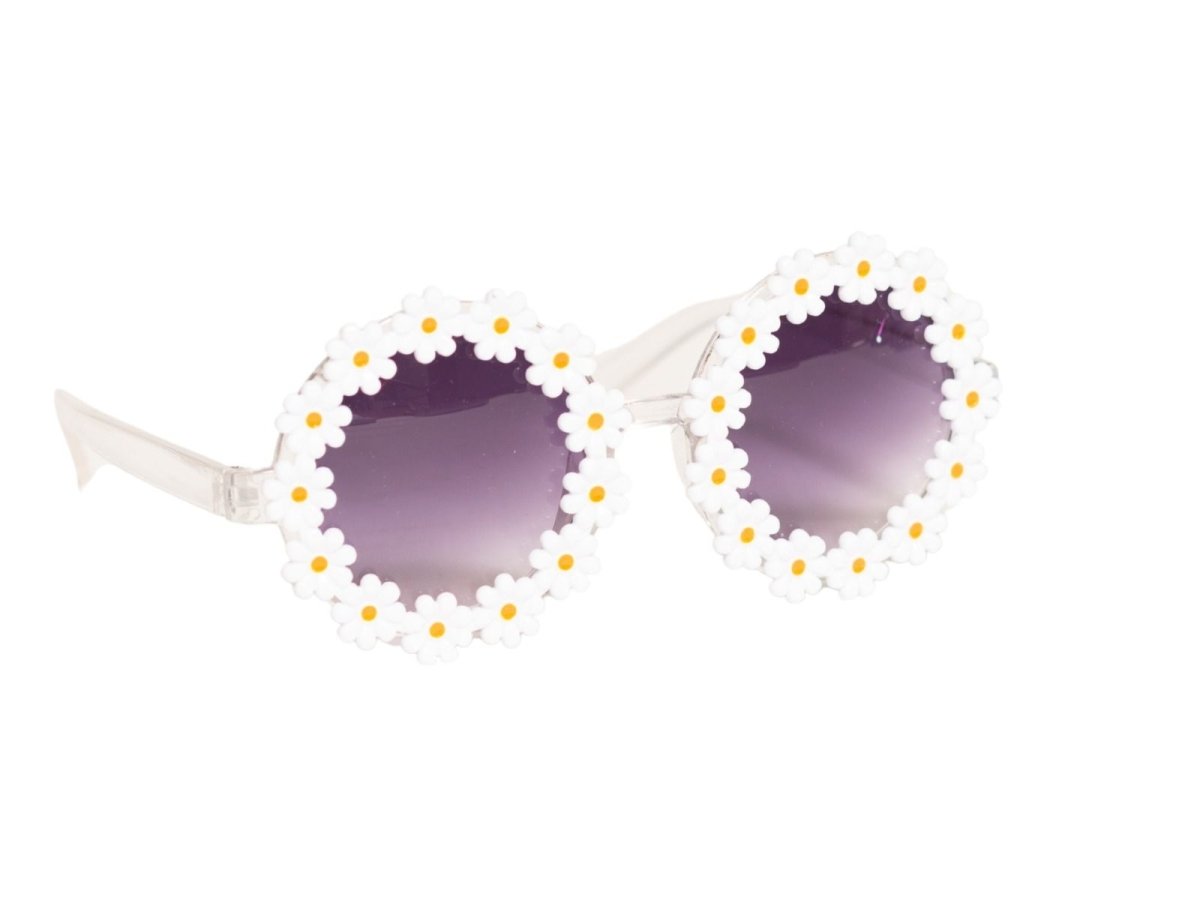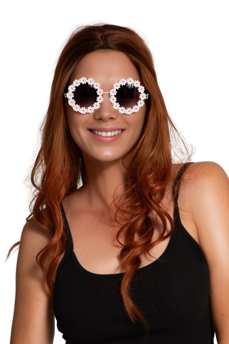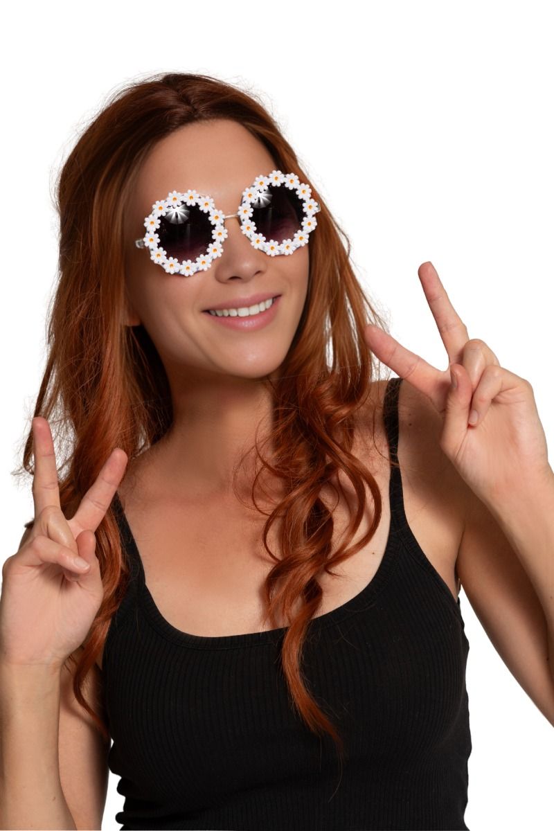 Diese Brille mit weißen Blumen ist ein fröhliches Hippie-Accessoire und perfekt für Fasching, Faschingspartys und Kostümfeste. Ideal, um ein Flower-Power-Outfit zu vervollständigen.