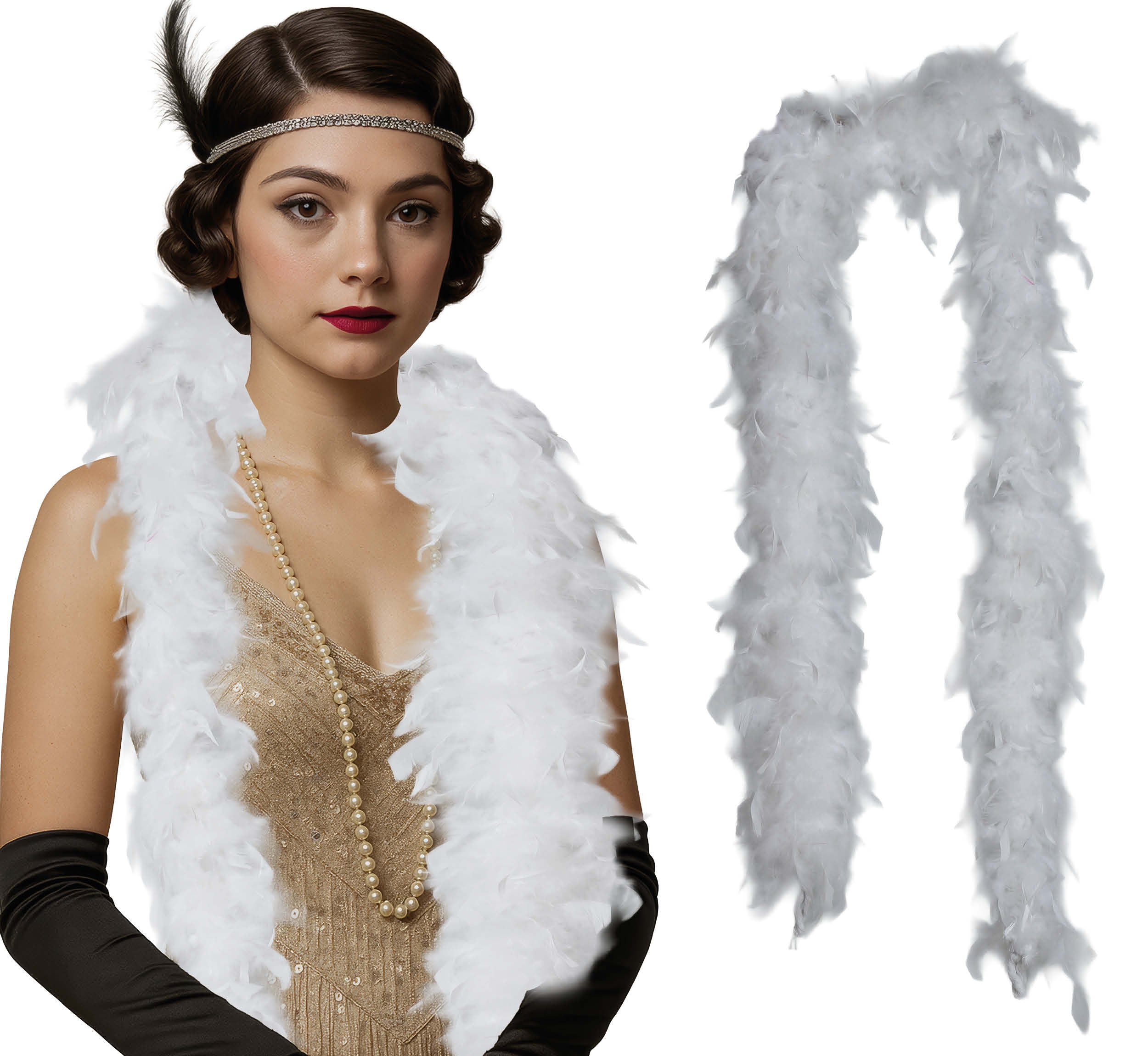 Verleihe deinem Party-Outfit mit dieser weißen Federboa einen stilvollen Touch. Leicht, weich und elegant - ideal für Mottopartys, Karneval, Bühne oder Kostümpartys.