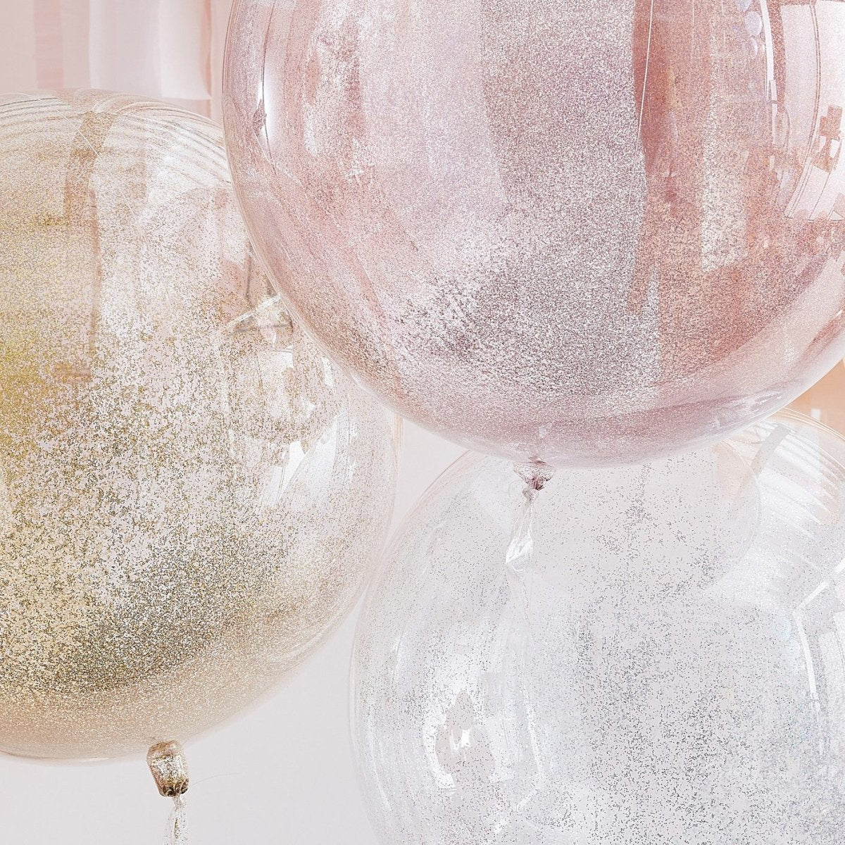 Lass deine Gäste deine schönen Party-Displays bewundern mit unseren Mixed Metallics Glitter Orb Ballons. Jede Packung enthält 3 Ballons in den glitzerndsten Gold-, Silber- und Roségoldtönen.
