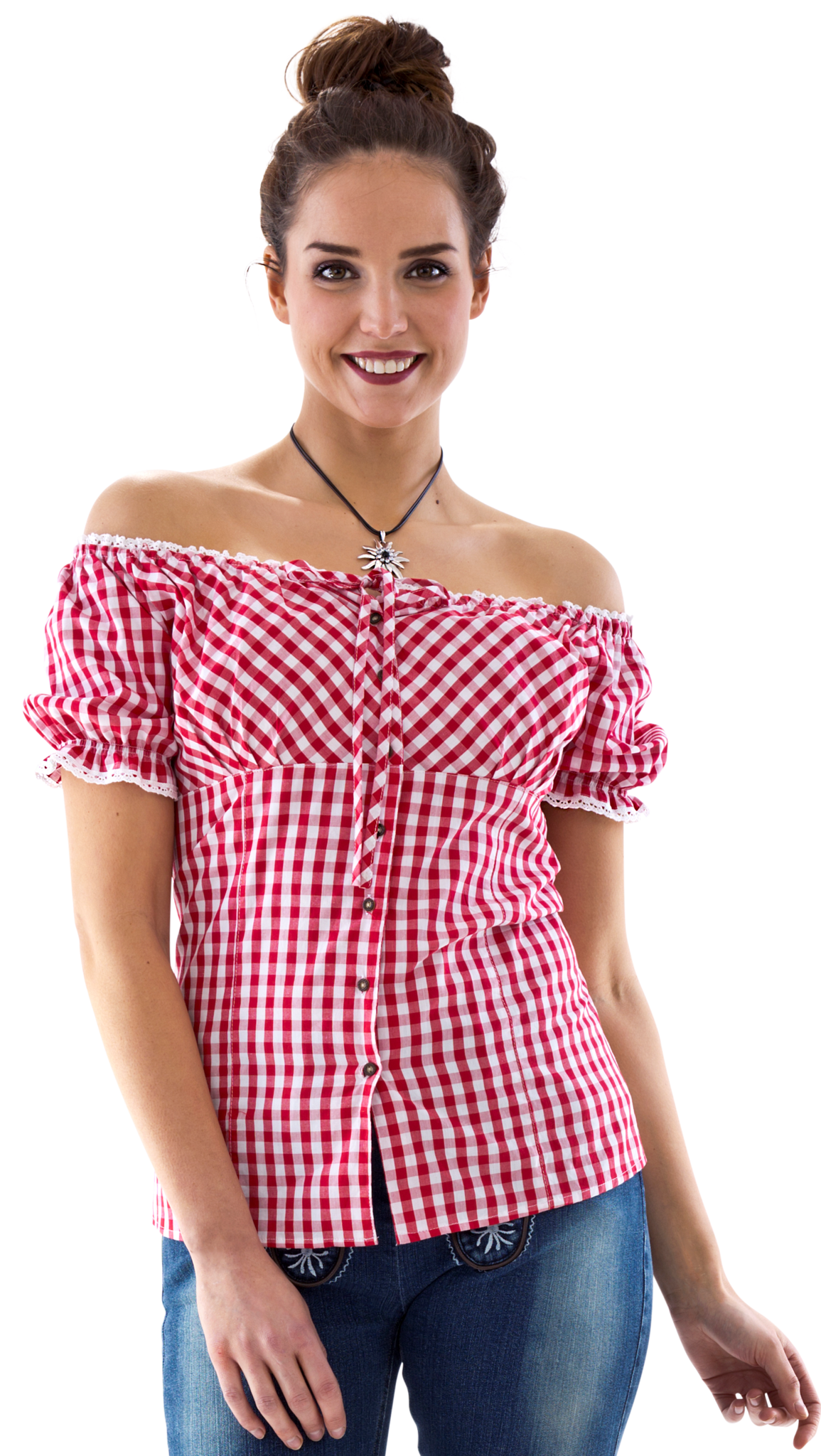 Hochwertige Carmenblusen mit Spitze an den Ärmeln.