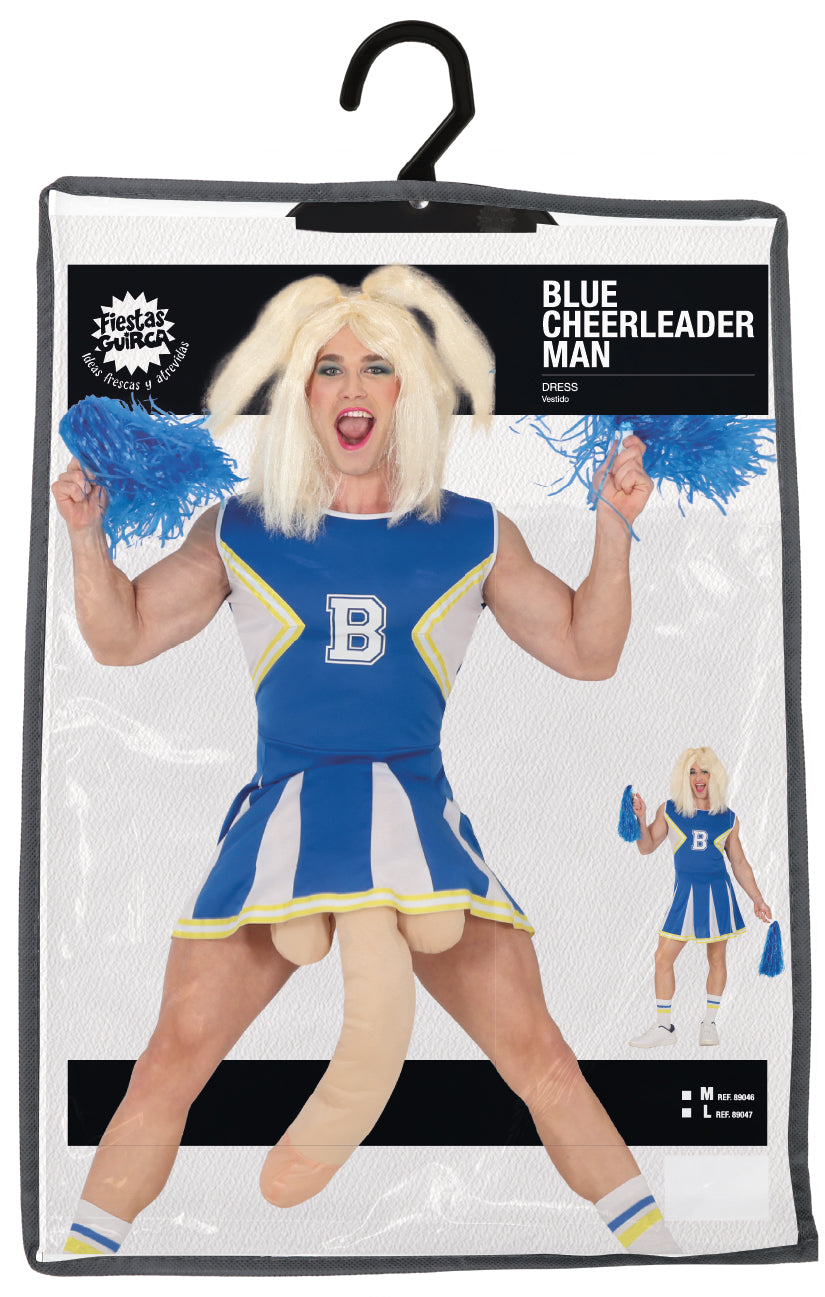 Der Cheerleader Suit Blue Men ist ein auffälliges und festliches Kostüm, das sich perfekt für Mottopartys, Junggesellenabschiede, Karneval oder üble Partys eignet. Mit seinem sportlichen Look und dem klassischen Cheerleader-Design stiehlst du garantiert die Show.