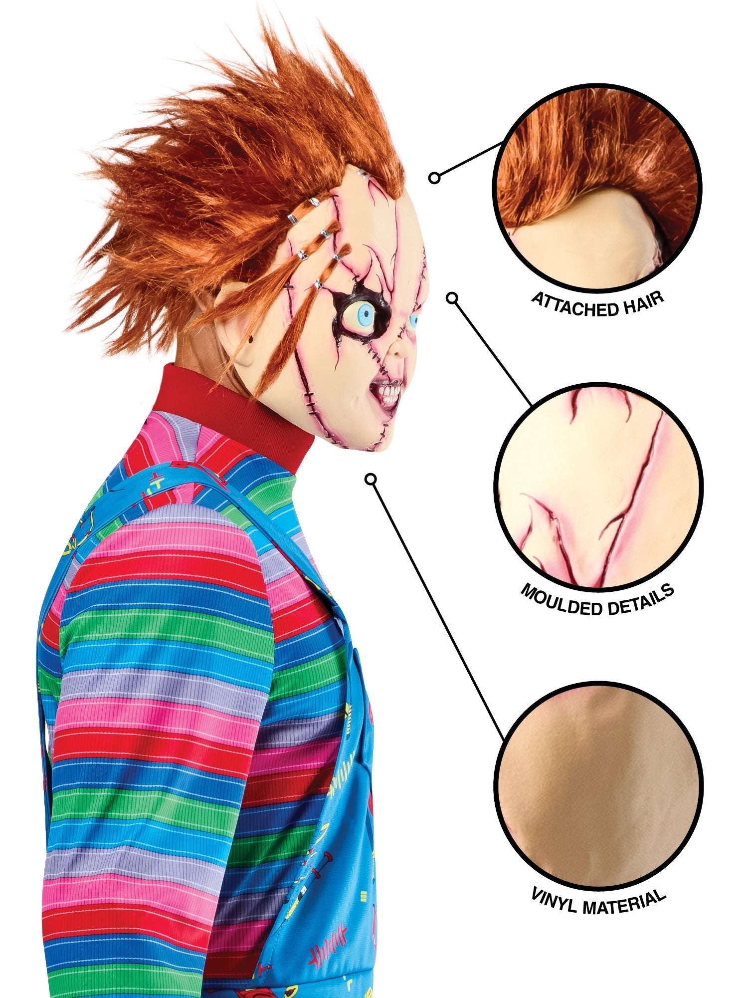Suchst du ein einfaches Halloween-Kostüm in letzter Minute oder einen kompletten Cosplay-Look? Diese ¾ Chucky-Maske mit ihrem kultigen Stitched Up-Look, nachdem sie wieder angenäht wurde, ist perfekt! Kombiniere sie mit unseren Chucky-Kostümen für Kinder und Erwachsene für ein komplettes Horror-Outfit.
