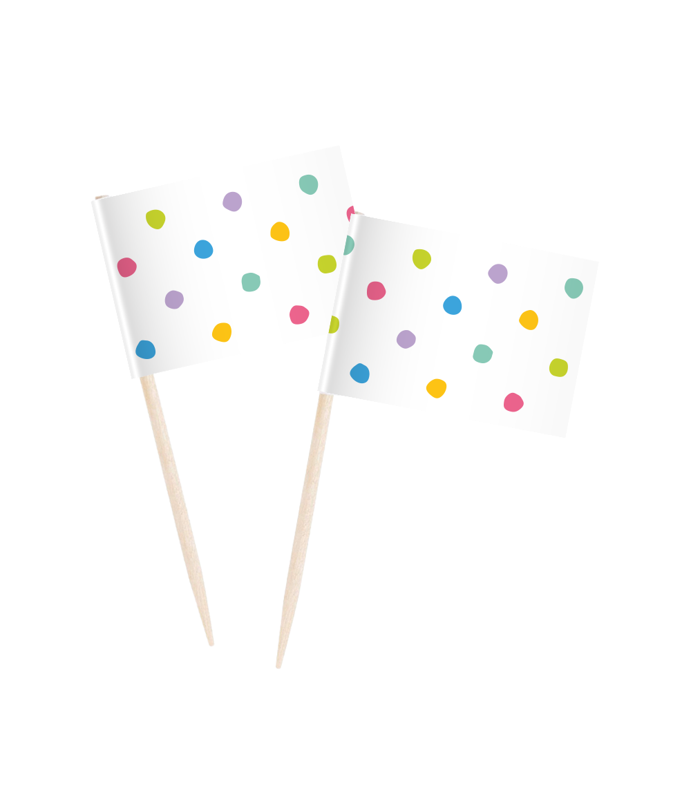 Bring Farbe und gute Laune auf jede Party mit diesen Cocktail Picks - Party Dots. Die fröhlichen Cocktailstäbchen sind perfekt für Vorspeisen, Snacks, Obst, Mini-Kuchen oder um Getränken einen festlichen Schliff zu geben. Dank des farbenfrohen Tupfenmusters fügen sie sich nahtlos in die gesamte Party Dots Linieein und machen es leicht, ein harmonisches und festliches Ensemble zu schaffen.