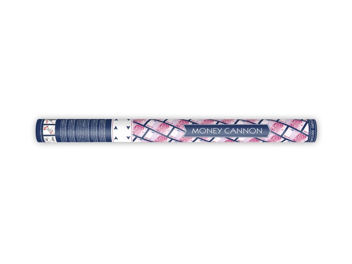 Inhalt: Konfettikanone, die aus 500 Euroscheinen schießt, Länge 60 Zentimeter.