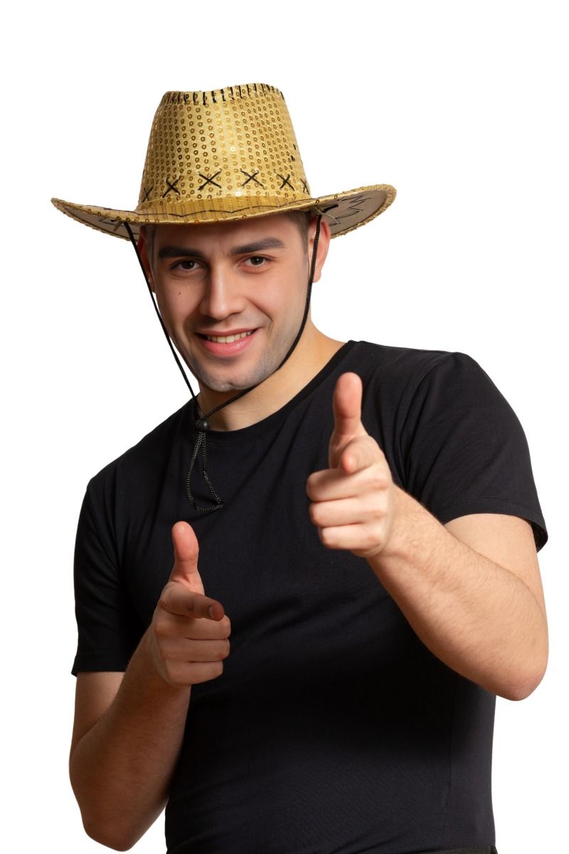 Mit diesem Set aus 6 goldenen Pailletten-Cowboyhüten fällst du bei Partys und Veranstaltungen auf. Perfekt für Mottopartys, Festivals, Junggesellenabschiede, Karneval oder Faschingspartys. Das goldschimmernde Design verleiht deinem Outfit sofort einen festlichen und auffälligen Look.