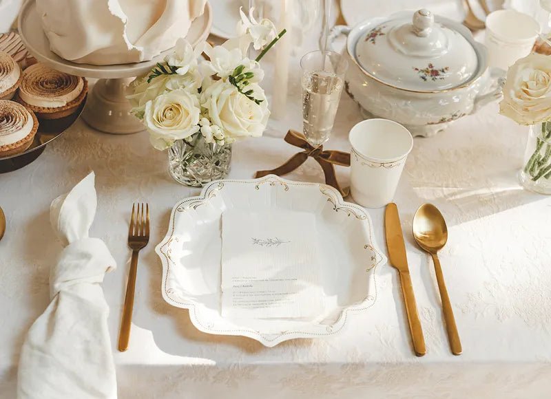 Verleihe deinem Festtisch mit diesen stilvollen Papptellern eine besonders festliche Note. Das weiße Design mit goldenen Akzenten sorgt für einen eleganten Touch und eignet sich ideal für Geburtstage, Kommunionen, Hochzeiten oder andere besondere Anlässe.