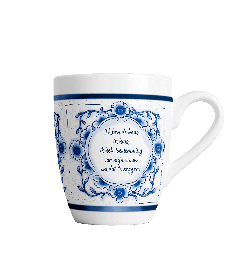 Bring einen Hauch von holländischem Charme in dein Zuhause mit dieser schönen Delfter Blau Tasse von Paper Dreams. Das klassische Delfter Blau erhält einen modernen, humorvollen Twist, der diese Tassen zu einem beliebten Geschenk macht. Diese Variante zeigt den amüsanten Text "Boss im Haus" - perfekt für jeden, der gerne das Sagen hat oder es zumindest gerne hätte.