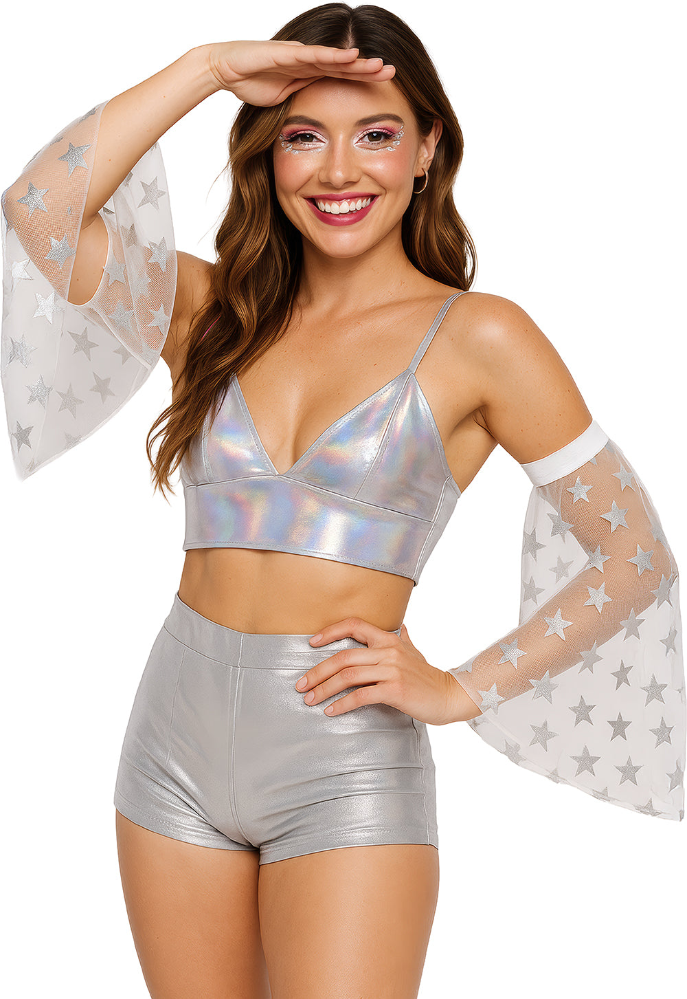 Disco 70S Schmetterlingsärmel Silberne Sterne