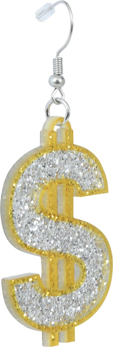 Verleihe deinem Outfit einen Hauch von Spaß und Glamour mit diesen auffälligen Dollar-Ohrringen. Ideal für Kostümpartys, Karneval, Festivals oder einfach, wenn du Lust auf ein auffälliges Detail hast.
