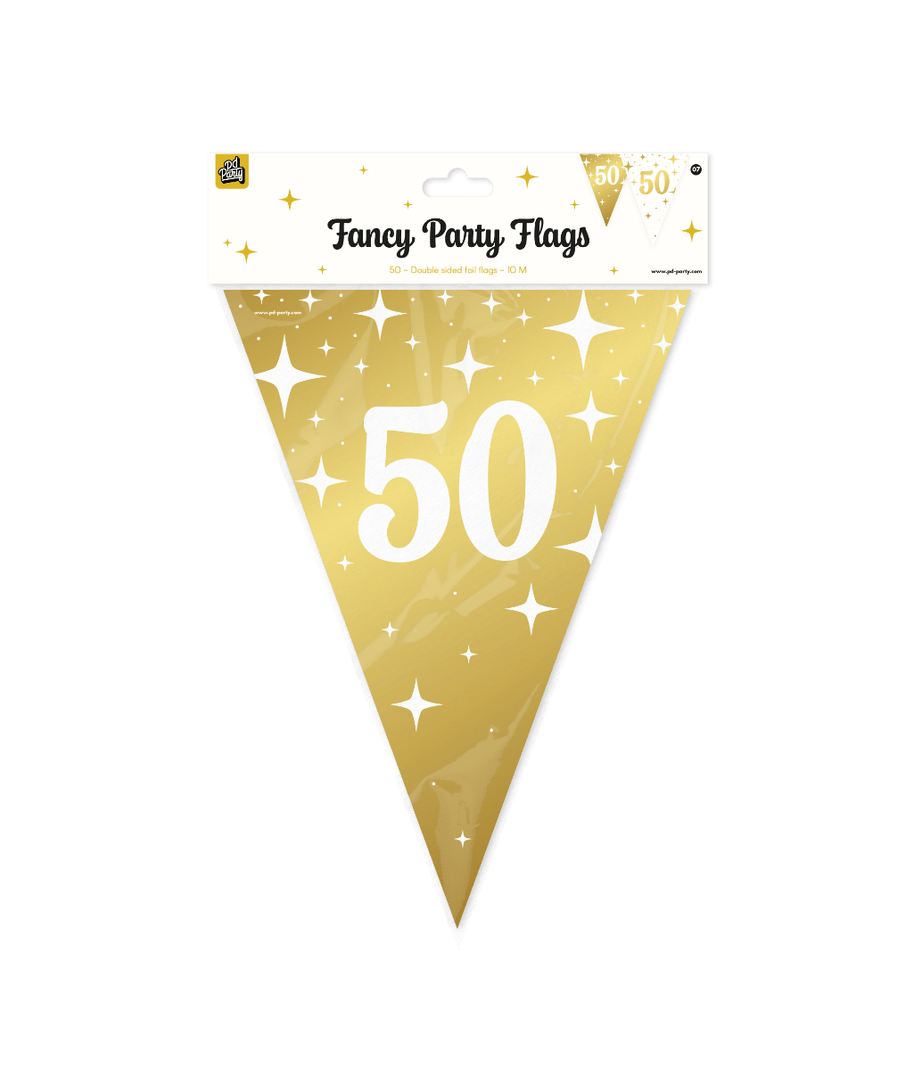 Die Fancy Party Flags foil - 50 lassen sich perfekt mit unseren passenden Ballons sowie mit anderen Partyartikeln aus unserem breiten Sortiment kombinieren, so dass du mühelos eine festliche und stilvolle Atmosphäre schaffen kannst.