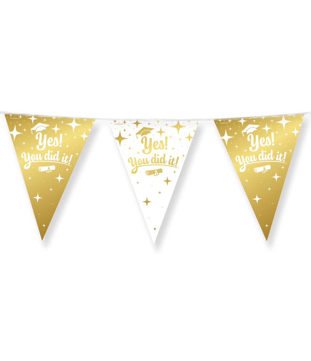 Die Fancy Party Flags Folie - Du hast es geschafft! lässt sich perfekt mit unseren passenden Ballons sowie mit anderen Partyartikeln aus unserem breiten Sortiment kombinieren, sodass du mühelos eine festliche und stilvolle Atmosphäre schaffen kannst.