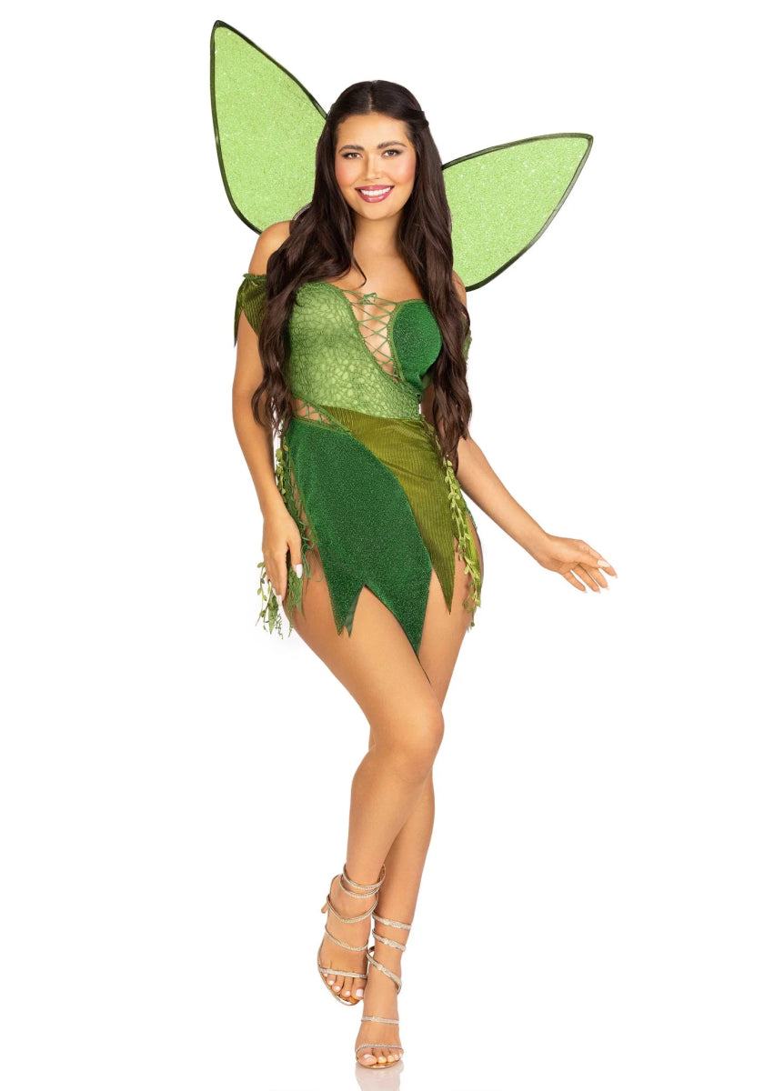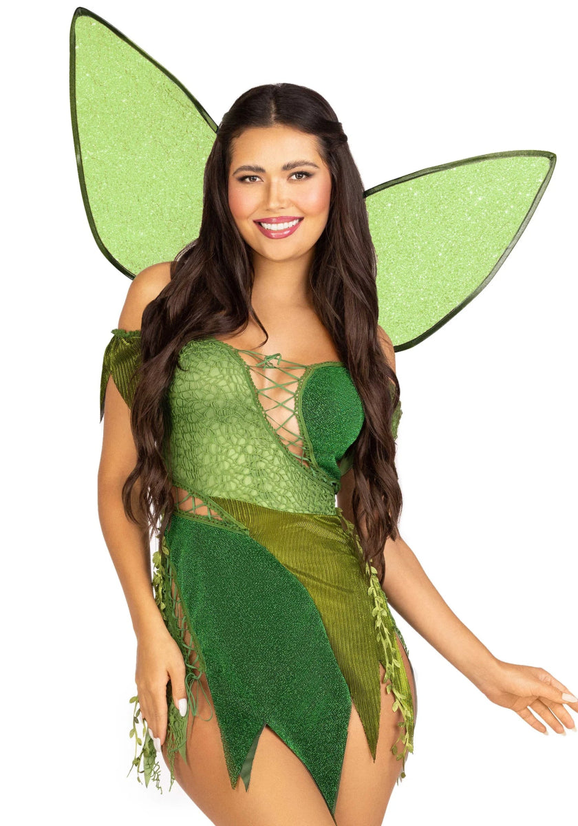 Tritt ins Rampenlicht und lass deine innere Zauberin erstrahlen im Forest Fairy Kostüm von Leg Avenue! Dieses bezaubernde 3-teilige Ensemble besteht aus einem wunderschönen Patchwork-Kleid mit verstellbarer Spitze und einem mit Blattakzenten verzierten Rock. Die abnehmbaren transparenten Träger und die schimmernden Feenflügel sorgen für einen zusätzlichen Hauch von Magie und Vielseitigkeit. Perfekt für Halloween, Karneval oder jede andere Mottoparty, auf der du mit deinem verzauberten Waldfee-Look glänzen willst! 🌿🦋