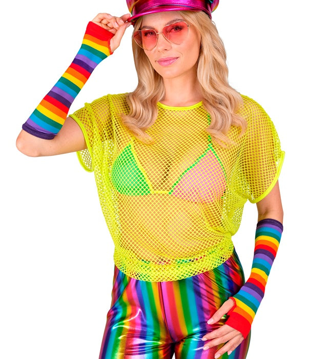 Mit diesen farbenfrohen, 33 cm langen fingerlosen Handschuhen können Kinder ihr Outfit vervollständigen. Sie eignen sich perfekt für Faschingspartys, Themenevents oder zum Spielen im Alltag.