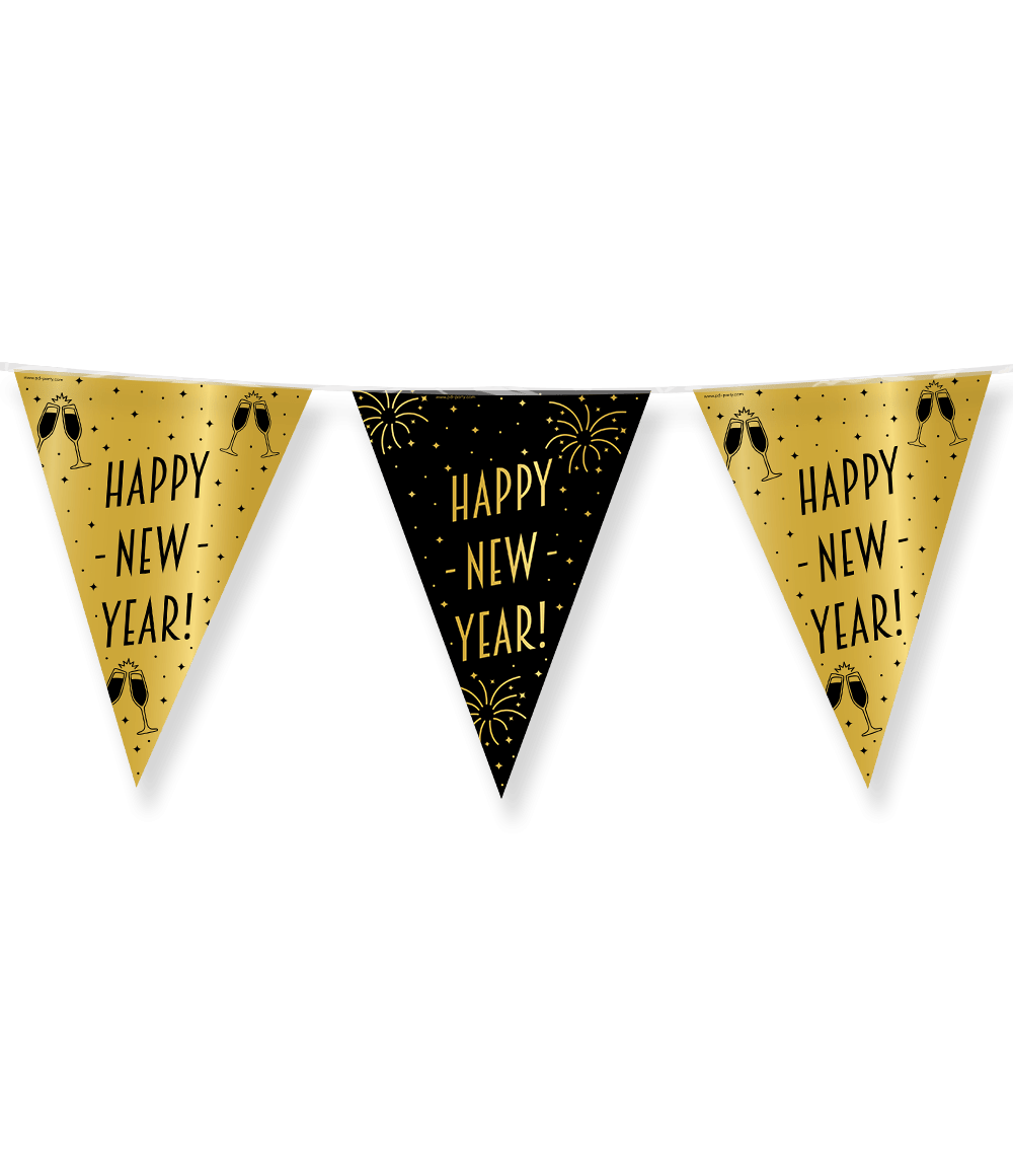 Fahnenleine Frohes Neues Jahr Gold Schwarz 10m