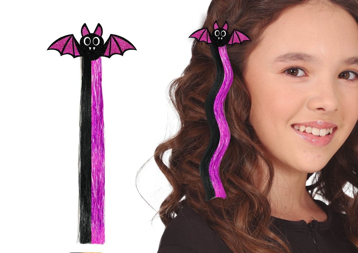 Fledermaus Haarverlängerung Schwarz Lila 40cm