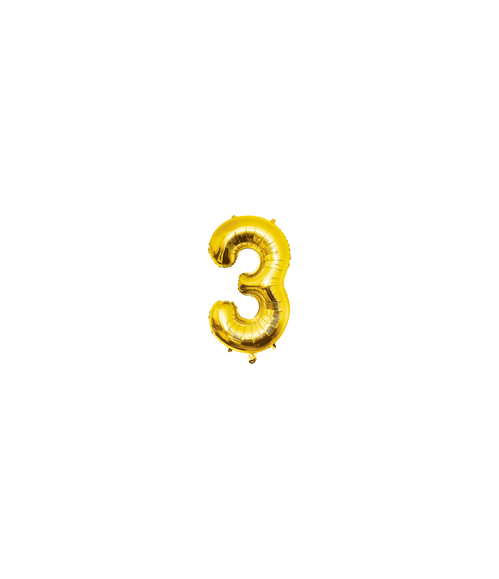Folienballon 40cm, Nummer 3 gold