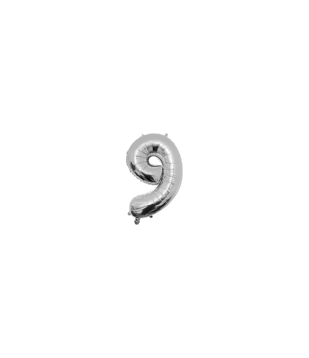 Folienballon 40cm, Nummer 9 silber