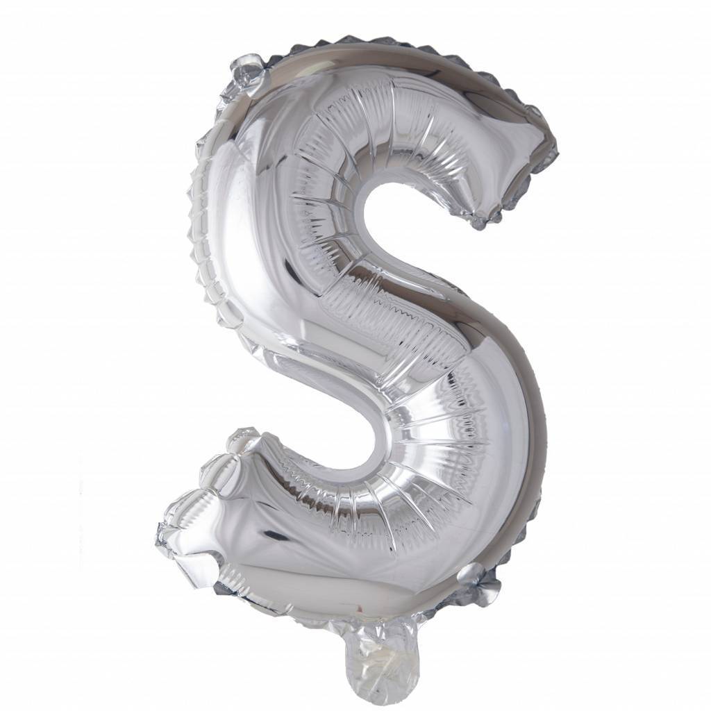 Folienballon Buchstabe S Silber 41cm mit Strohhalm