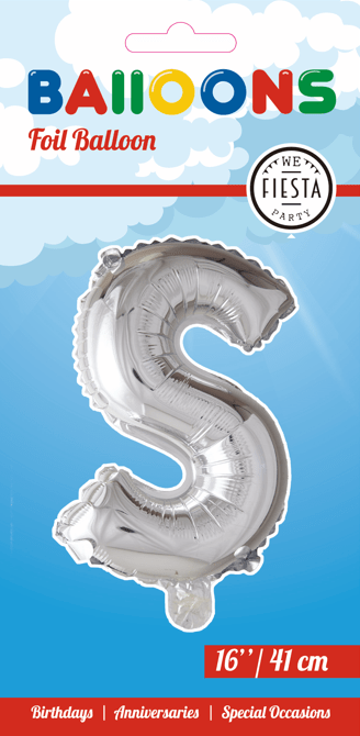 Verpackungsinhalt:Folienballon Buchstabe S Silber 41cm mit Strohhalm
