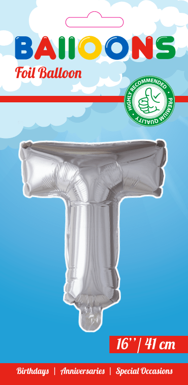 Verpackungsinhalt:Folienballon Buchstabe T Silber 41cm mit Strohhalm