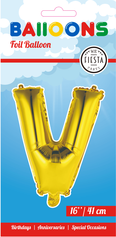 Verpackungsinhalt:Folienballon Buchstabe V Gold 41cm mit Strohhalm