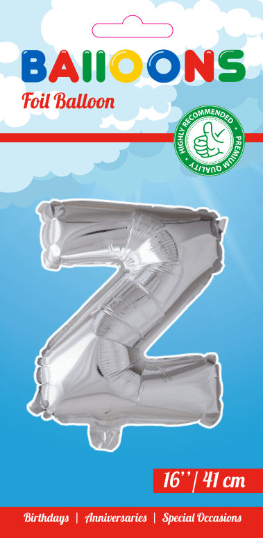 Folienballon Buchstabe Z Silber 41cm mit Strohhalm