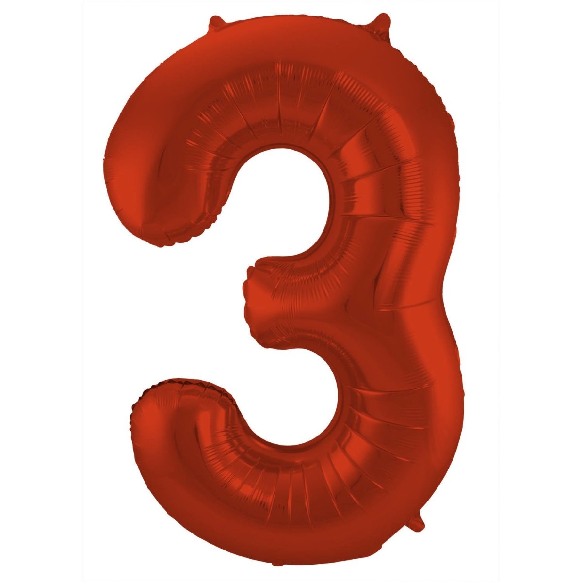 Folienballon Figur 3 Matt Rot XL 86cm leer