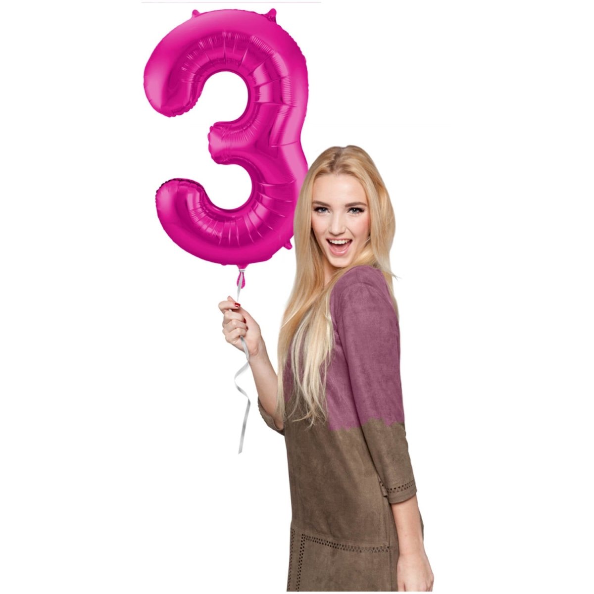 Folienballon Figur 3 Fuchsia Metallic XL 86cm leer