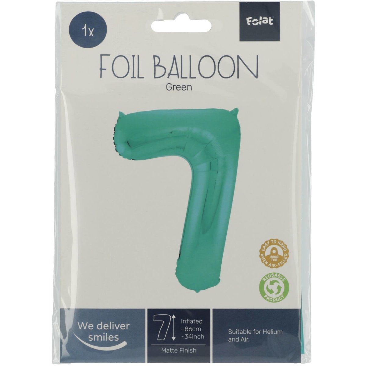 Folienballon Figur 7 Matt Grün XL 86cm leer