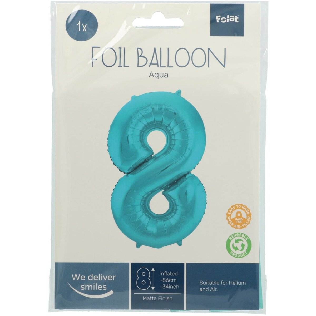 Folienballon Nummer 8 Pastel Aqua Metallic Matt - 86 cm. Inhalt: 1 Folienballon. Farbe: Blau. Kann zum Beispiel bei folgenden Anlässen verwendet werden: Geburtstag, Kinderfest und Jahrestag. Dieser Folienballon ist 34 inch/86 cm groß. Der Artikel ist aus Folie hergestellt.