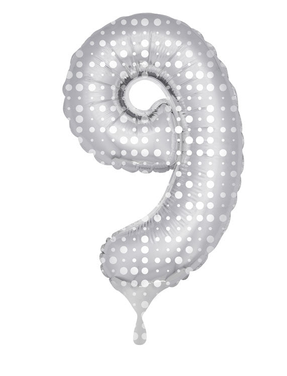 Folienballon Figur 9 Silver Dots XL 86cm leer