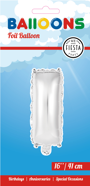 Folienballon Buchstabe I Silber 41cm mit Strohhalm