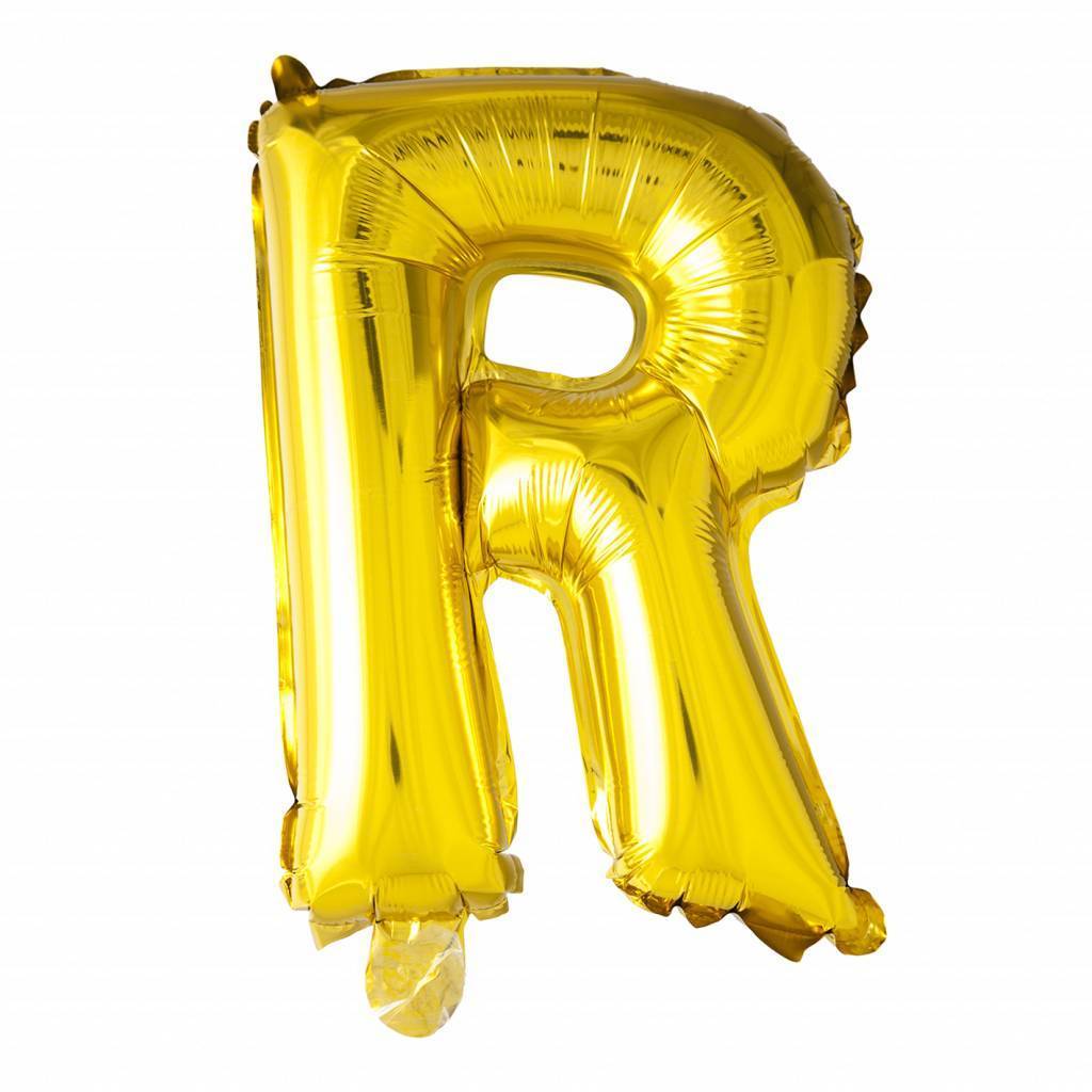 Folienballon Buchstabe R Gold 41cm mit Strohhalm