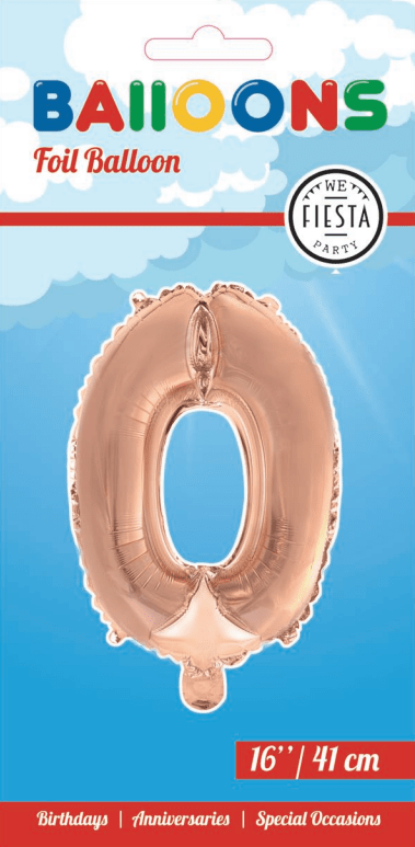 Folienballon Figur 0 Rose Gold 41cm mit Strohhalm