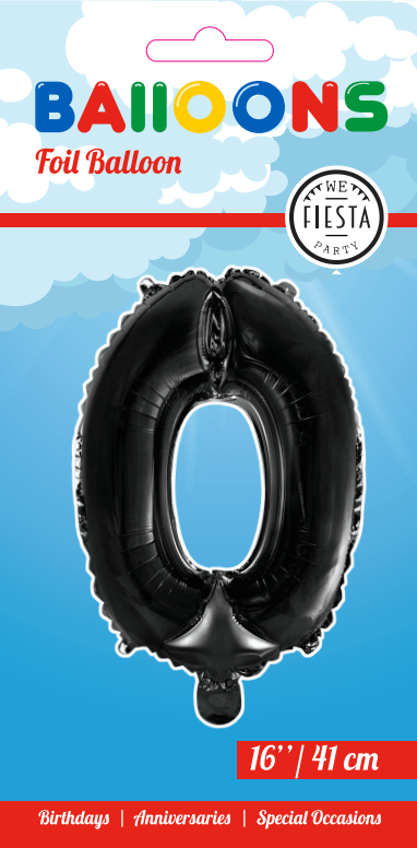 Folienballon Figur 0 Schwarz 41cm mit Strohhalm