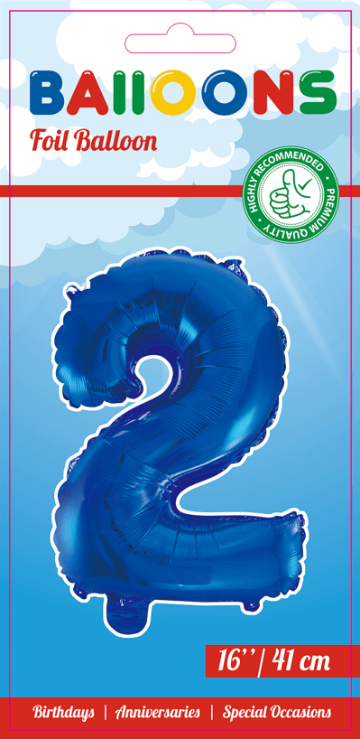 Folienballon Figur 2 Blau 41cm mit Strohhalm